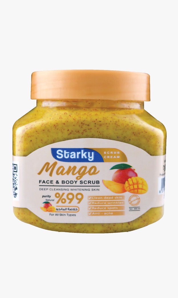 كريم صنفره يحتوي على حبيبات ناعمه تعمل على ازاله الجلد الميت بدون تجريح للبشره , صنفره ستاركي بخلاصه المانجو تحتوي على فيتامين أ الي يفيد البشره المعرضه لحب الشباب و يخفف من افراز زيوت البشره بشكل جيد .
